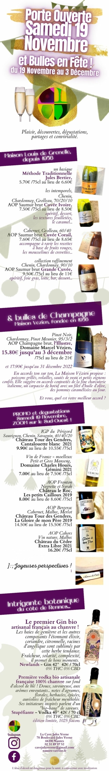Et du 19 novembre au 4 décembre 2021, faites le plein de bulles avec le Champagne Marcel Vézien et la maison Grenelle à Saumur !